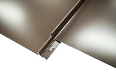 В нашем каталоге вы можете выбрать кликфальц гладкий или Line. Line от гладкого отличается наличием волнистых линий, которые носят эстетический характер и не влияют на прочностные показатели материала. На фото в карточке товара изображены оба вида кликфальца.