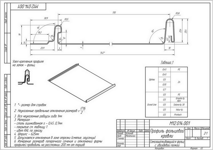 Размеры листов изготавливаются под заказ от 0,5м до 9м по длине и 510мм(полезная) по ширине.